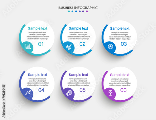 Business infographic vector design template with 6 options, steps or processes. Can be used for workflow layout, diagram, annual report, web design
