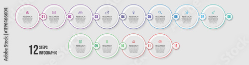 business infographic with 18 interconnected sections with additional number icons and colored lines