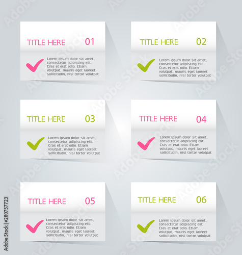 Business infographics template for presentation, education, web design, banners, brochures, flyers. Pink and green tabs. Vector illustration.