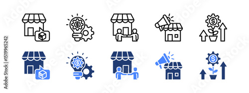 Business integration icon set with Market, Business Strategy, Collaboration, Marketing and Investment.