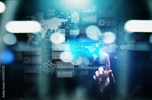 Business intelligence dashboard with graph and icons. Big data. Trading and investment. Modern technology concept on virtual screen.