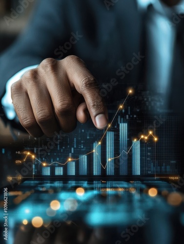 Business investment strategy presentation office setting digital graph analysis professional environment focus on growth metrics