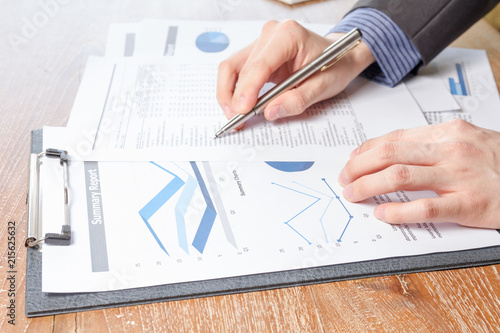 business man analyzing graph and chart document report