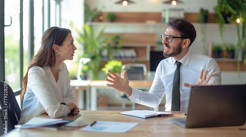 Business Man and Woman Talking at Table