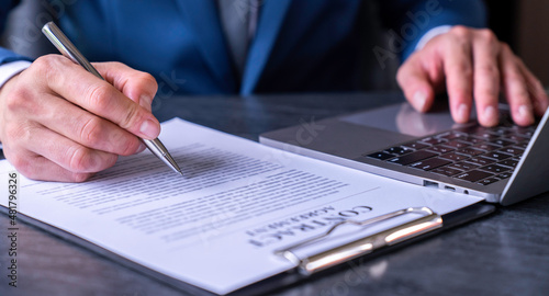 business man reading and signing a business contract, business agreement consensus signing, business concept and signing