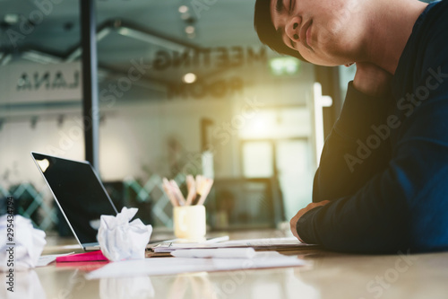 business man sitting at table in office feeling tired and stressed when investment loss, investment concept, success concept