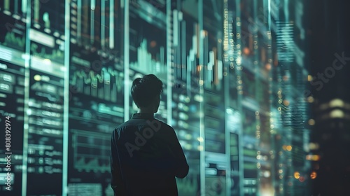 Business man with chart and coin
