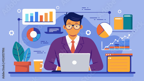 business man with laptop Professional Business Analytics and Data Reporting Illustration