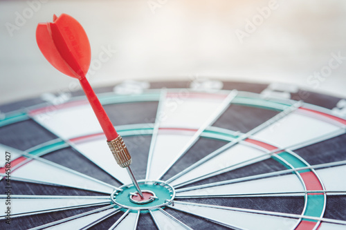 Business marketing success concept. Red dart arrow in center of the target dartboard. Bullseye is a target of business.
