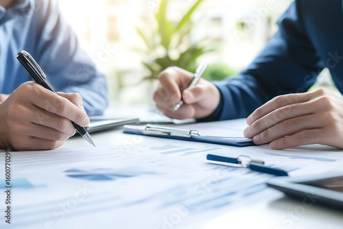 Business meeting analysis with charts and graphs for strategic planning discussion
