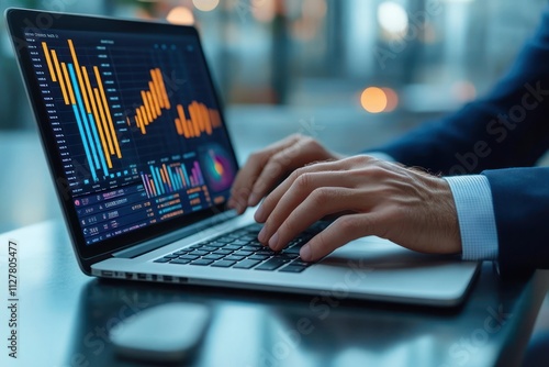 Business Meeting in Modern Office Workspace with Businessman Typing on Laptop