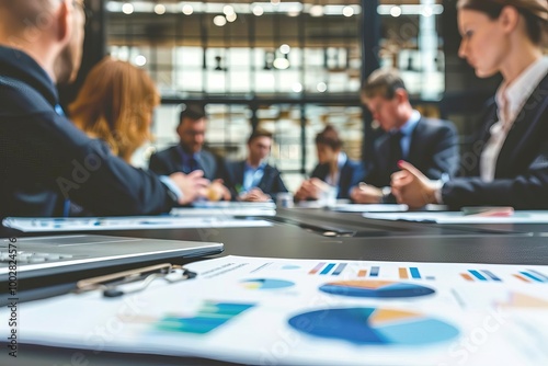 Business meeting or workshop with professionals engaged in strategic discussions and analysis in a conference room setting