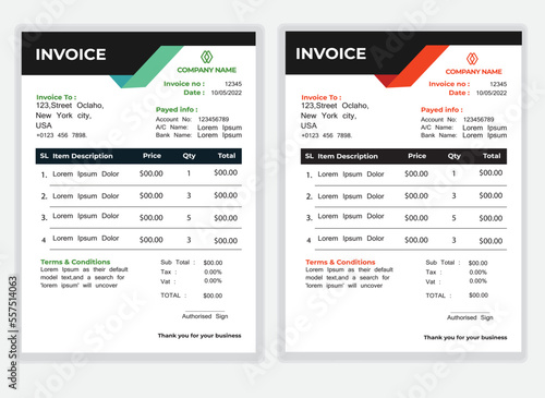 Business Minimal Corporate Invoice design template vector illustration bill form price . Creative template and stationery design payment agreement design template Cash Memo, Vector Quotation Design
