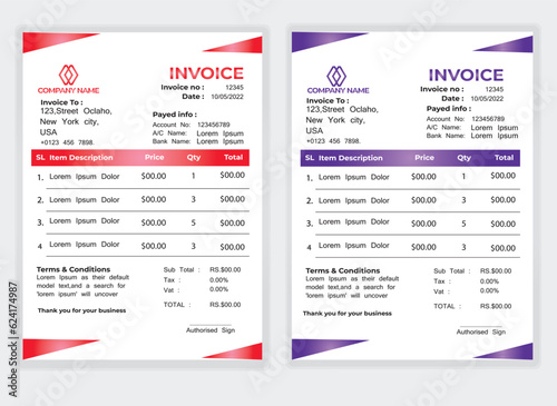 Business Minimal Corporate Invoice design template vector illustration bill form price . Creative template and stationery design payment agreement design template Cash Memo, Vector Quotation Design