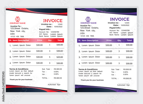 Business Minimal Corporate Invoice design template vector illustration bill form price . Creative template and stationery design payment agreement design template Cash Memo, Vector Quotation Design