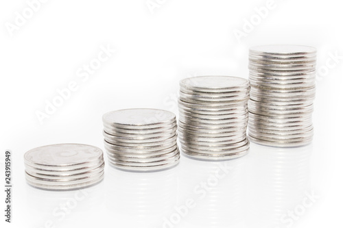 Business money graph coins on white background