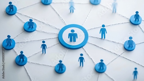 Business Networking and Human Resources Concept with Blue Target and People Icons on Gray Background
