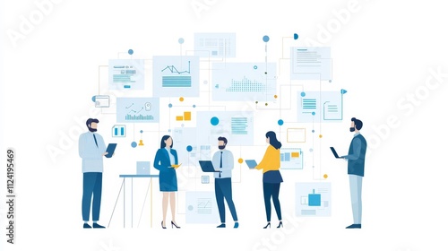 Business People Analyzing Data and Charts on Whiteboard, Collaboration and Teamwork Concept