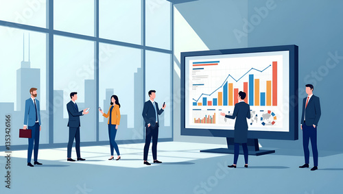 Business People Analyzing Financial Investments: Dashboard Monitor Concept for Strategic Decision Making and Growth - Vector Illustration with Empty Space for Customization