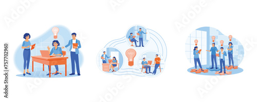 Business people are discussing inside the office. Looking for new ideas and solutions to achieve success. Business Idea concept. Set Flat vector illustration.