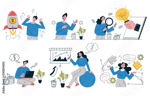 Business people character job work team teamwork abstract concept. Vector graphic design illustration