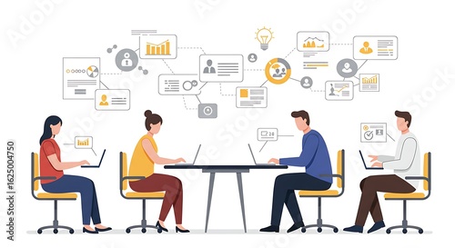 Business people in a modern office meeting use laptops and technology to work together on a new project design