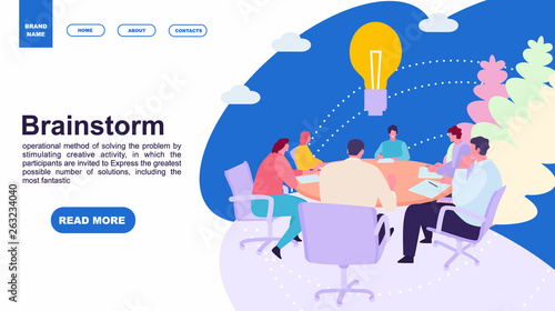Business people meeting at office. Brainstorming concept. Landing page template of family. web page design and mobile website. Vector illustration flat cartoon style