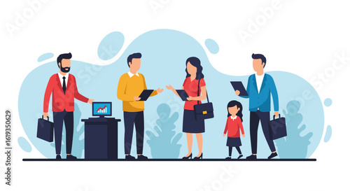 Business people meeting, discussing projects and ideas. Ideal for presentations, reports, and websites.
