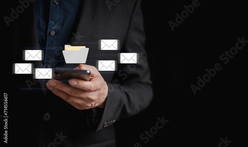 business people touch on email in virtual screen.business e-mail communication and digital marketing. Inbox receiving electronic message alert internet technology.