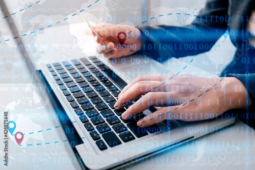 Business people use tablets and hold credit cards as an online shopping concept With a calculator and a book placed on the table