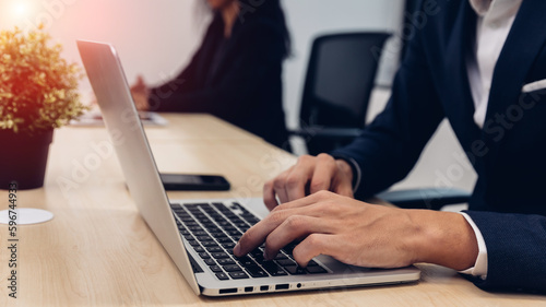 Business people using smart phone or computer for Chat GPT Chat with AI or Artificial Intelligence. Chat GPT, artificial intelligence Ai Chat GPT, AI technology to assist humans work.