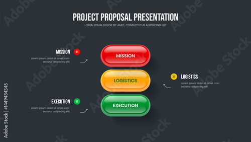 Business Performance Slideshow Template Vector Illustration. Marketing Report Three Option Diagram Presentation Design. Digital Review 3 Element Infographic Slide Layout.