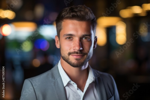 business person in a company interior with a chart background