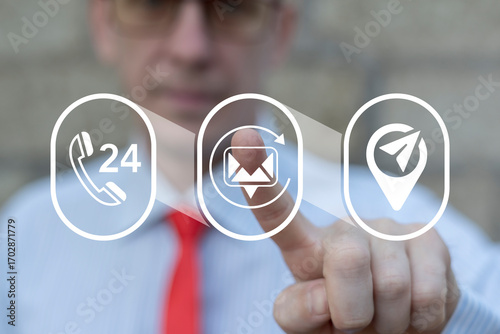 Business person using virtual touch screen push icon of incoming mail. New message notice communication concept. Business email, digital marketing internet social media connection technology.