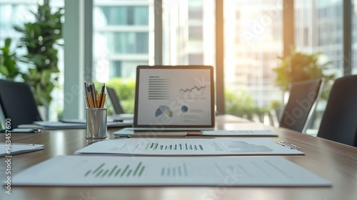 Business plan presentation with a projector and charts