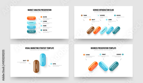 Business Portfolio 4 5 2 3 Option Infographic Slideshow Layout Bundle. Marketing Campaign Four Five Two Three Step Diagram Presentation Template Vector Illustration Collection.