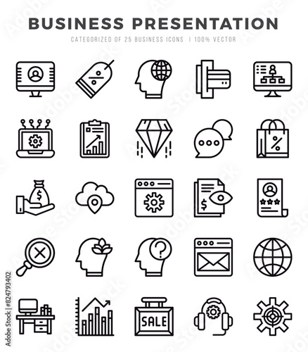 Business Presentation Lineal icons. Vector Lineal illustration.