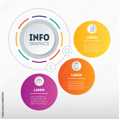 Business presentation or infographic with 3 options. Dynamic infographics of technology or education process. Web Template of a 3-step chart, infographic or mind map. Vector.