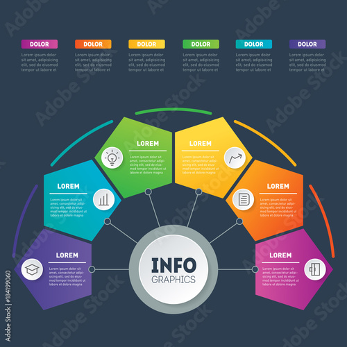 Business presentation or infographic with 6 options. Vector infographics with 6 parts of technology or education process. Web Template of a chart, info graphic, mindmap or diagram.