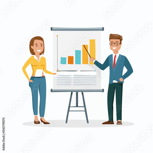 Business Presentation Team Collaboration and Growth Strategy Illustration