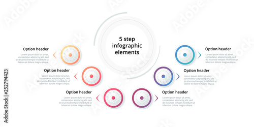 Business process chart infographic with 6 step circles. Circular corporate workflow graphic elements. Company flowchart presentation slide template. Vector info graphic design.