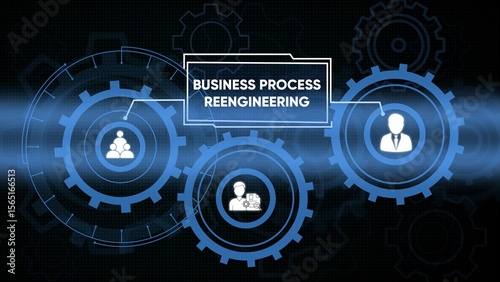 Business process reengineering concept with gears and abstract icons representing teamwork and management