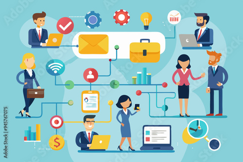 Business process, workflow diagram or model design, flowchart to get result, map or plan for business procedure, solution, strategy to implement concept, business people drawing workflow process