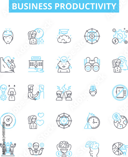 Business productivity vector line icons set. Strategy, Efficiency, Automation, Processes, Management, Excellence, Ergonomics illustration outline concept symbols and signs