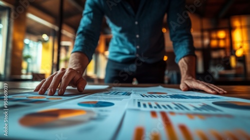 Business Professional Analyzing Financial Reports and Charts in Modern Office Setting