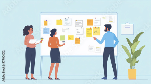 Business professionals collaborating on a project in a modern office setting, discussing strategy and data analysis for corporate growth and teamwork success.