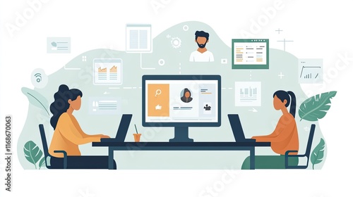 Business professionals collaborating remotely, empowered by AI-driven productivity tools for strategic planning, improving team synergy, decision-making, and business outcomes.