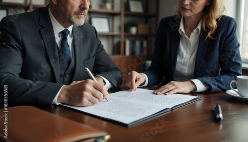 Business Professionals Engaging in Contract Negotiation in Modern Office Setting