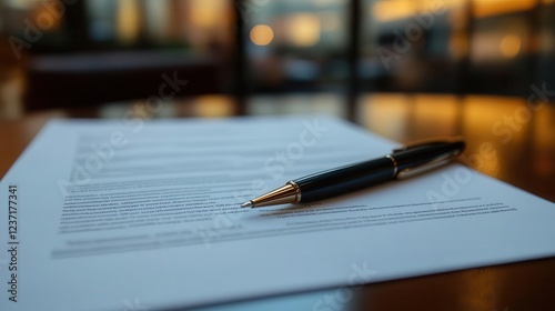 Business proposal, close-up of a proposal document on a table with a pen nearby