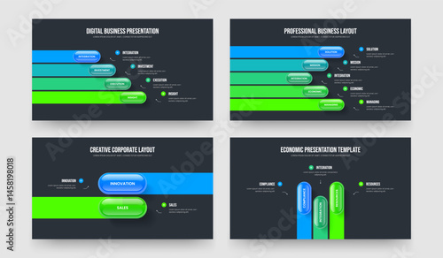 Business Proposal Four Five Two Three Step Infographic Frame Layout Vector Illustration Collection. Modern Analysis 4 5 2 3 Element Diagram Slide Template Set.